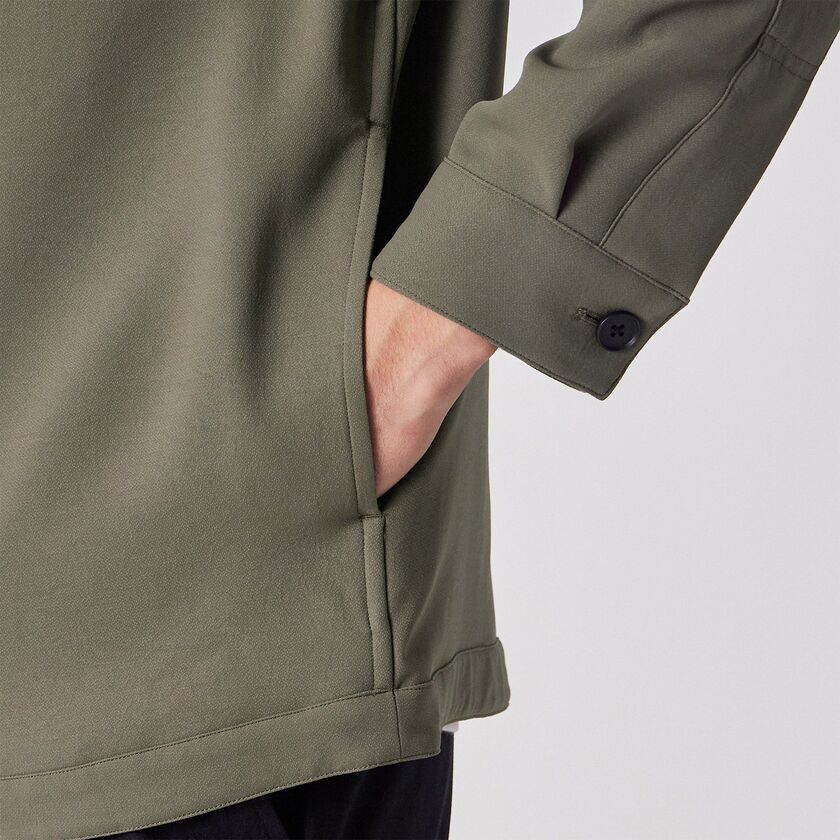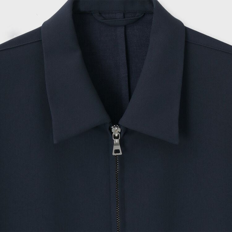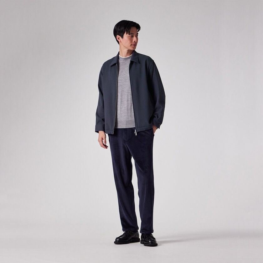 小ぶりな襟が特徴の、ミニマルで洗練されたドリズラーデザインです。装飾を削ぎ落としたシンプルなルックスは、都会的でモダンな印象を与えます。普遍的なデザインだからこそ、機能美とシルエットの美しさが際立つ一着です。
