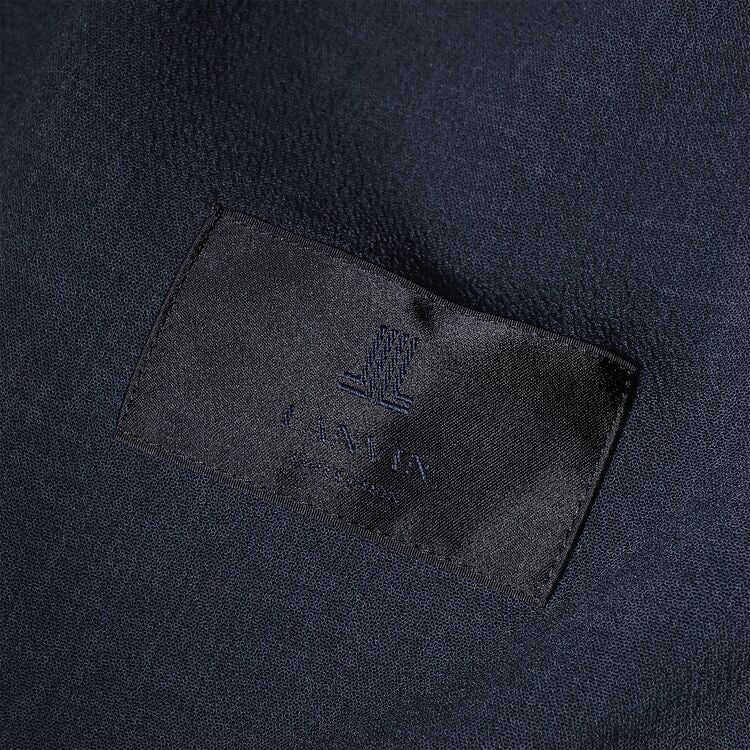 薄手でありながら、糸の太さと二重織(ダブルフェイス)の技術により、表裏で異なる質感を持たせた汎用性の高い合繊機能素材です。特筆すべきは肌に触れる裏面の質感で、ボイル地のようなドライなシャリ感を持たせることで、涼しさを感じさせる高機能なファブリックに仕上げています。