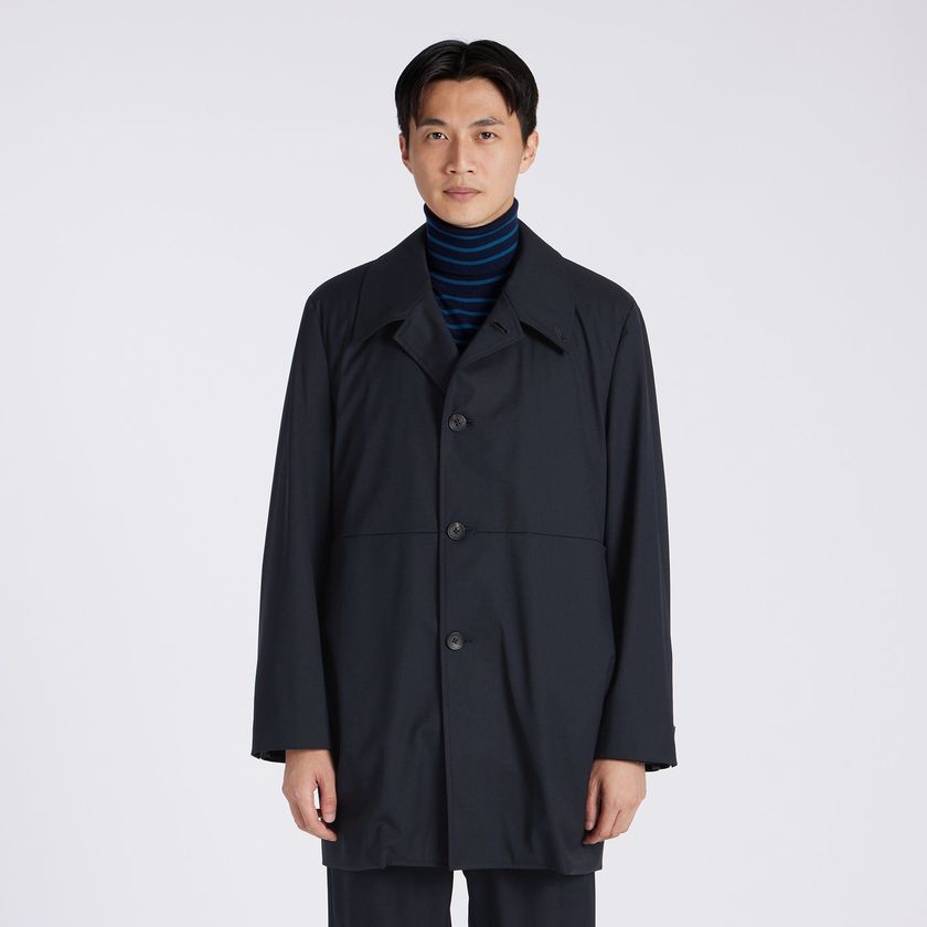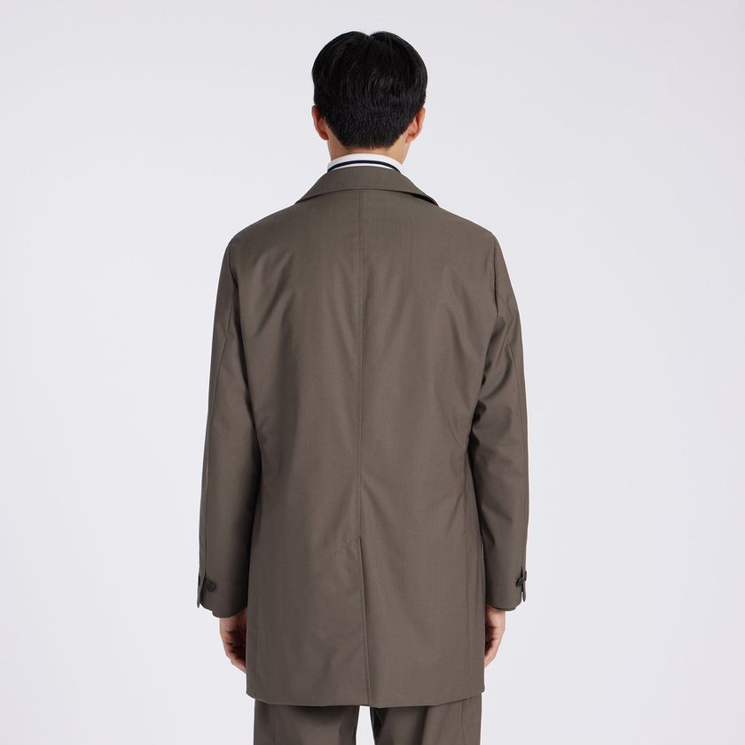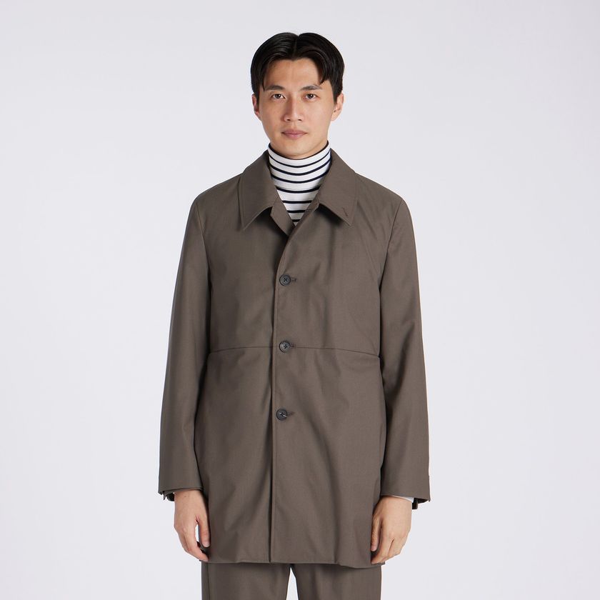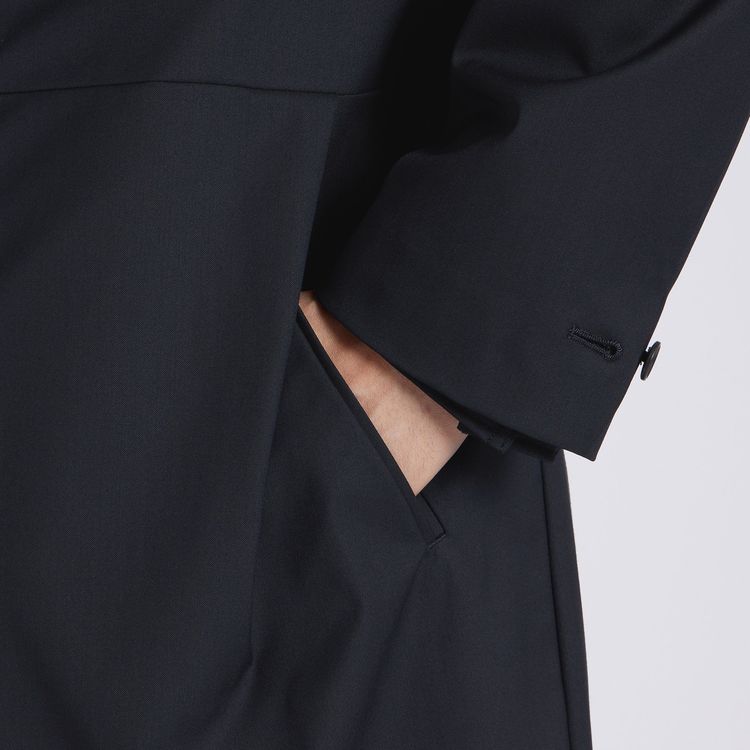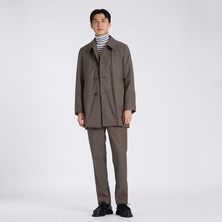 TECH WOOLの裏面にラミネート加工を施したパリスシングルトレンチです。