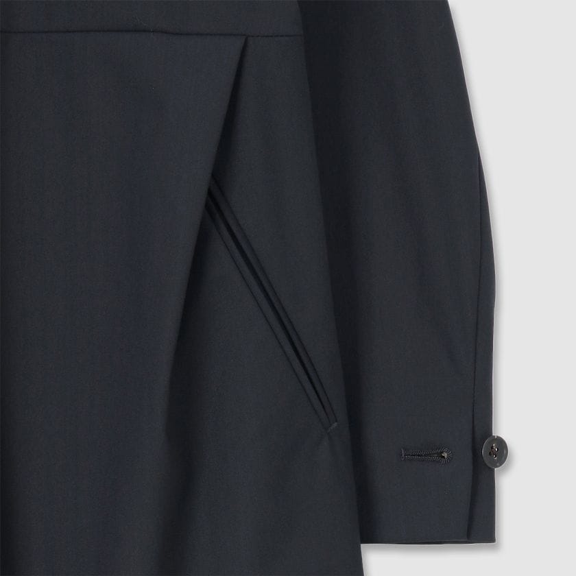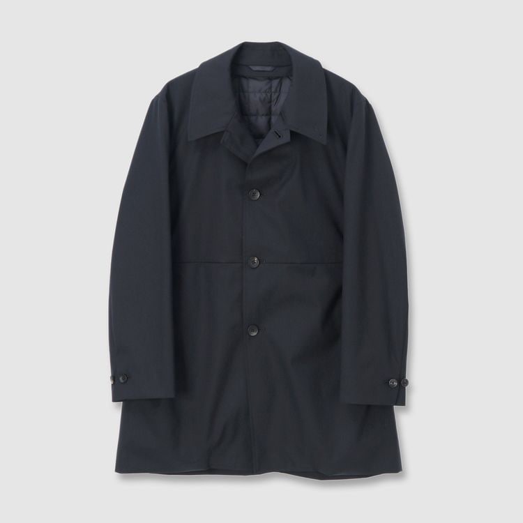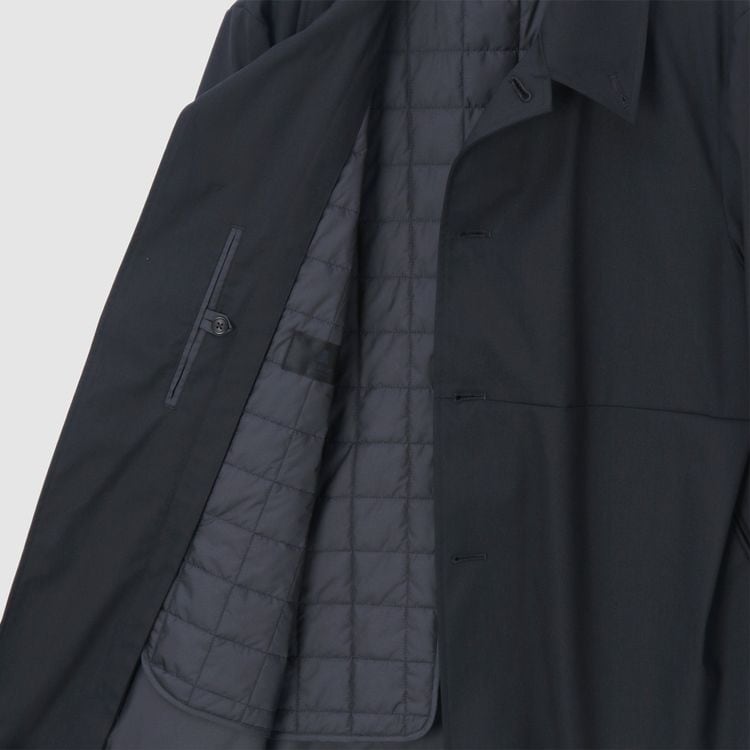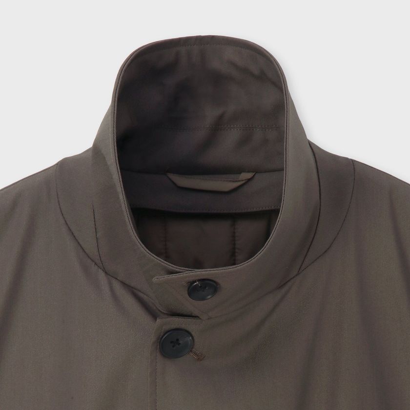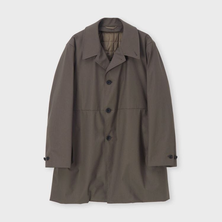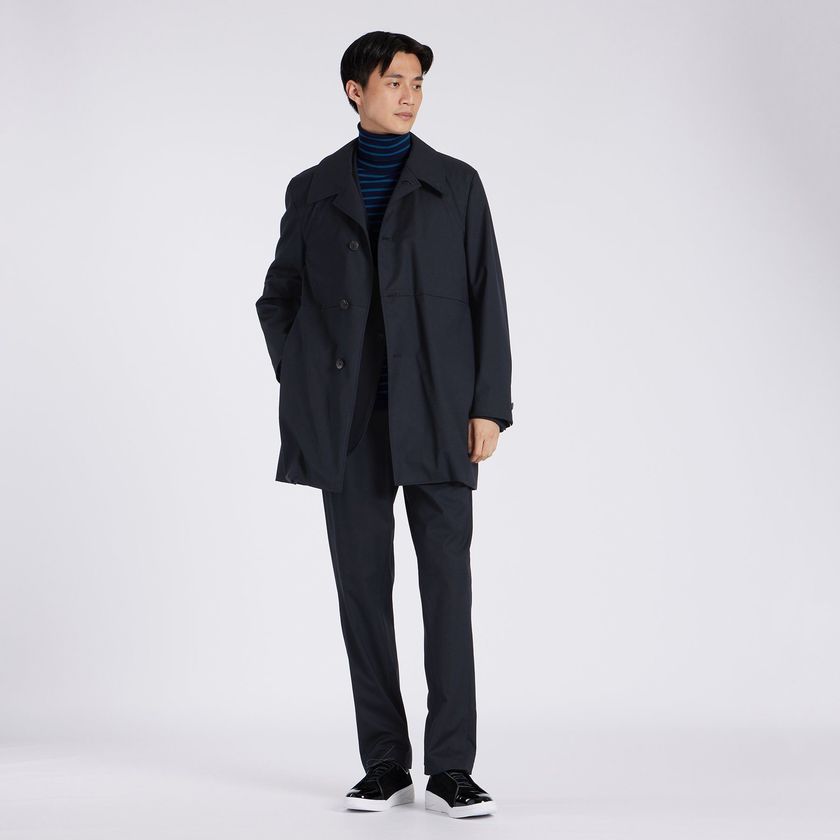 TECH WOOLの裏面にラミネート加工を施したパリスシングルトレンチです。