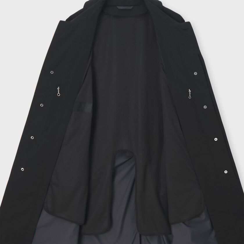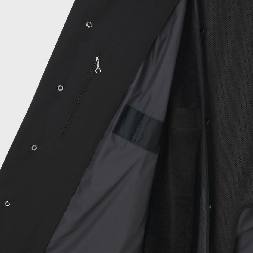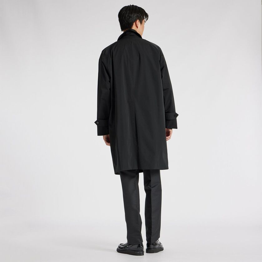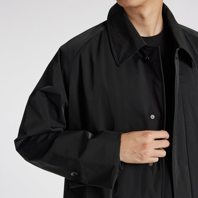 強撚加工を施し弾力性を持たせた着心地の良さに加えて、通気性・保温性に優れたデタッチャブルライナーを備え、長期間着用できる作り。