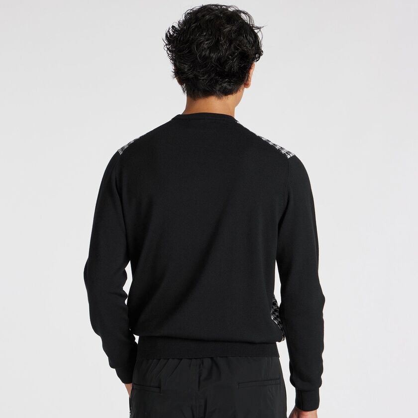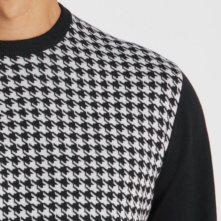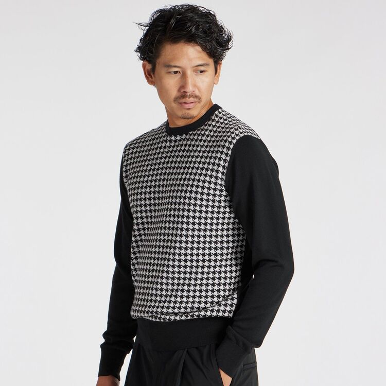 シーズンテーマであるウィンザー公のスタイルからインスパイアされた、ハウンドトゥースジャガードカーディガン。