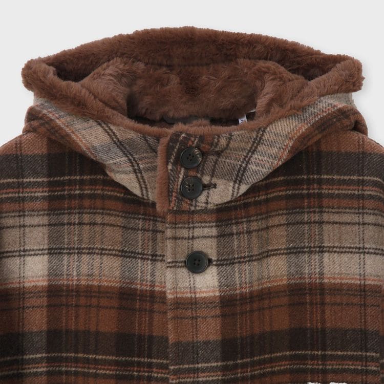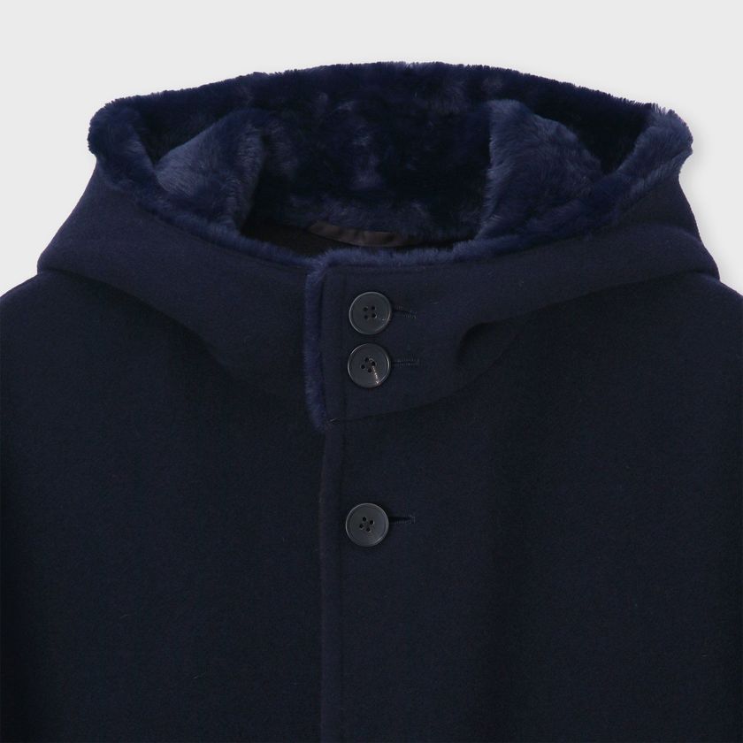 表地: 毛73% ナイロン24% その他3%、フード裏: ポリエステル100%、袖口部分: ポリエステル100%