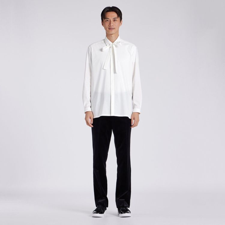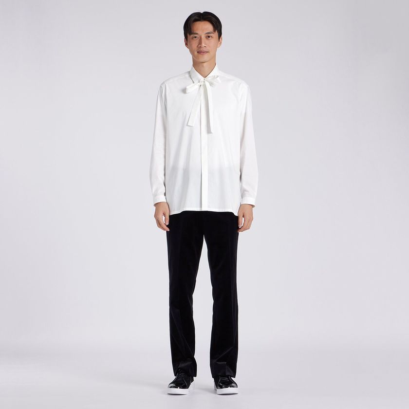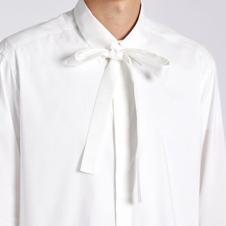 コットンポプリンの持つ良質な素材感と発色を、エレガントなジャンヌ ボウブラウスにも