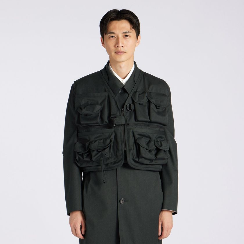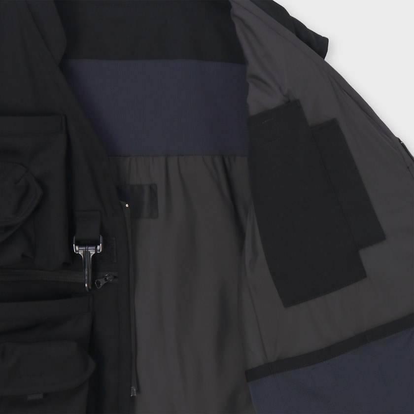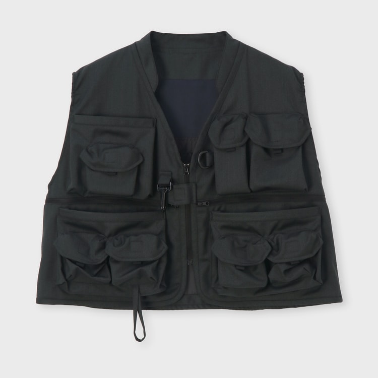キャバリツイルの裏面にラミネート加工を施したフィッシングウェストコートです。