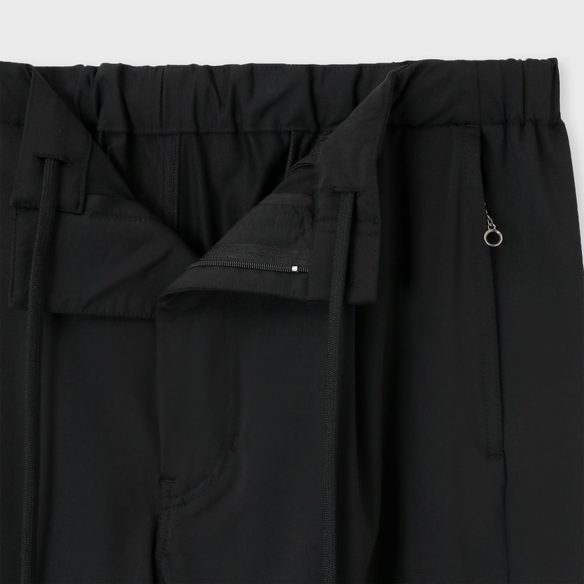 • ドローストリングやゴムシャーリングという心地よさをもたらすディテールと、