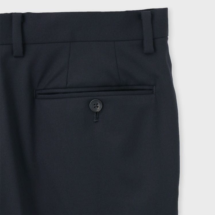 SUPER120'sサージにポリウレタン混で高パフォーマンスなアイテムに仕上げています。