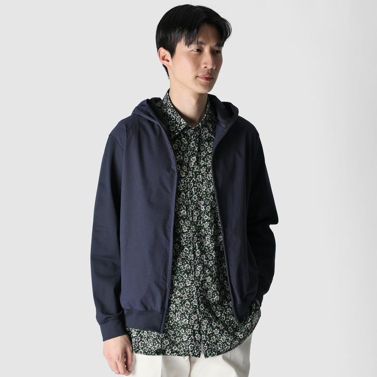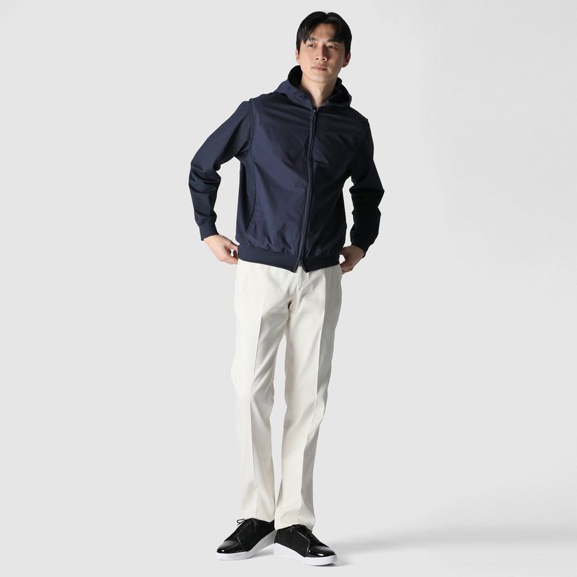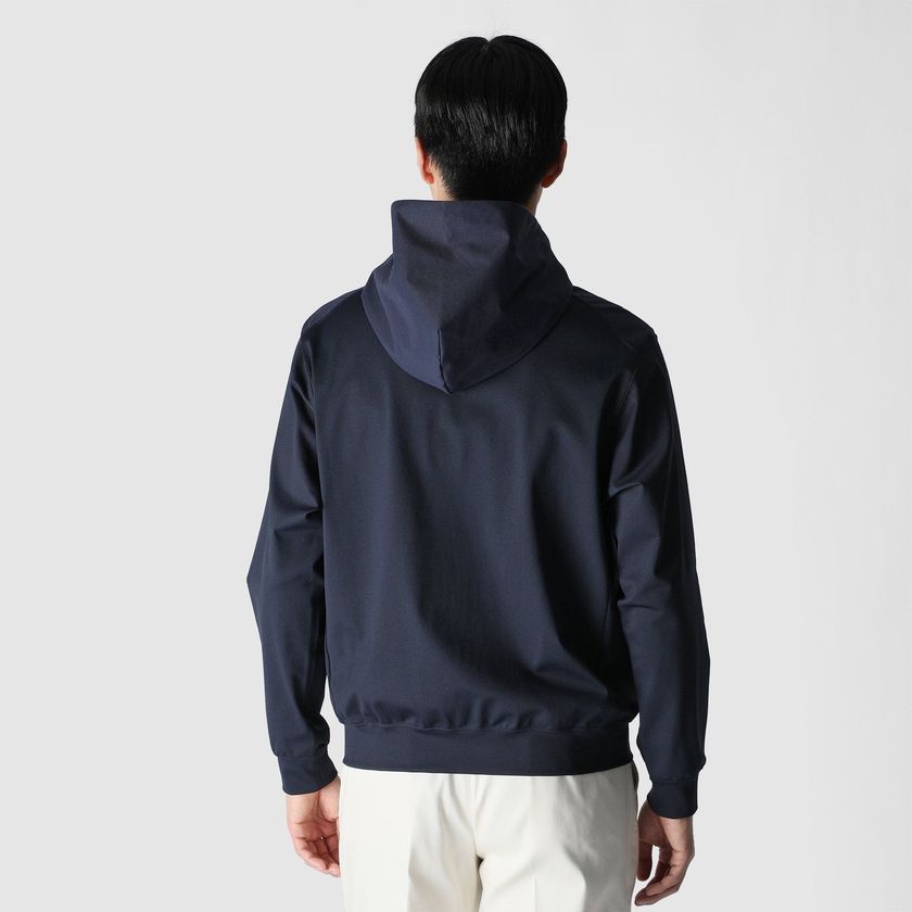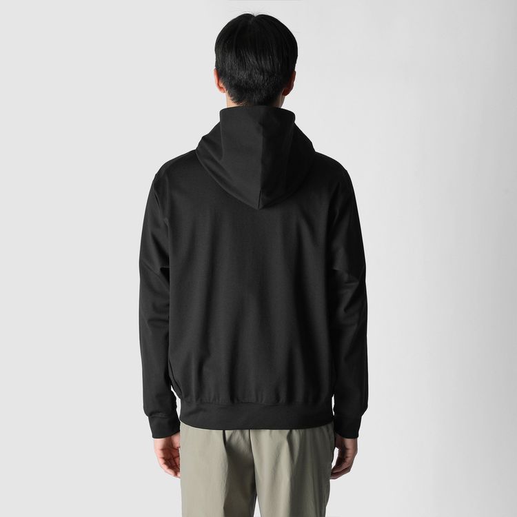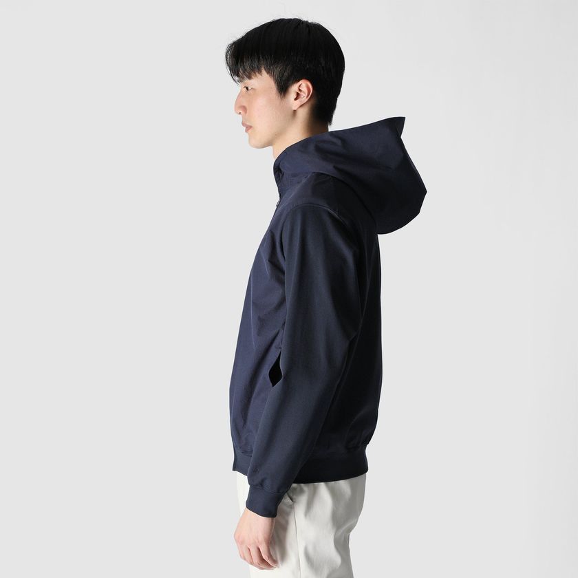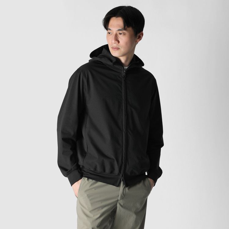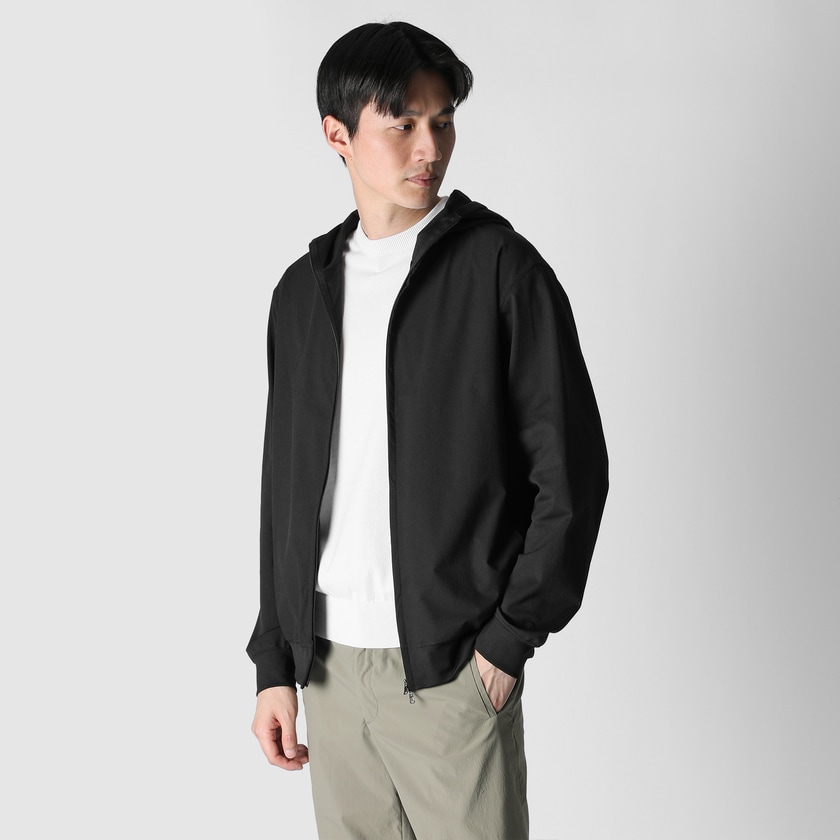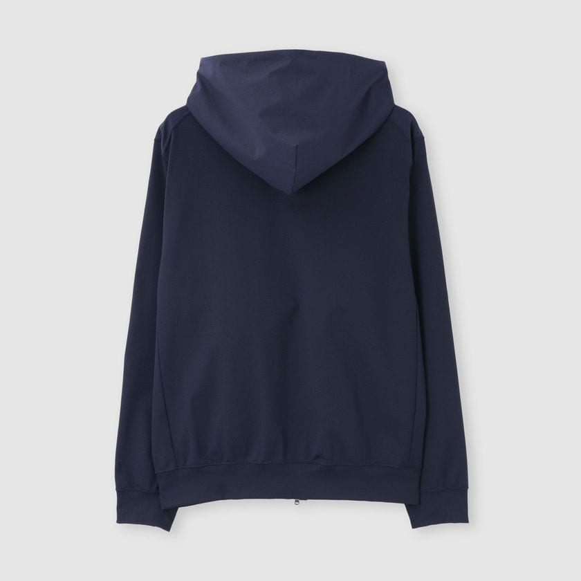 エアリーで清涼感のある合繊ピケ地をフロントとフードに配した、テックジップアップフーディ。