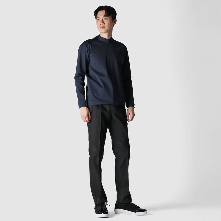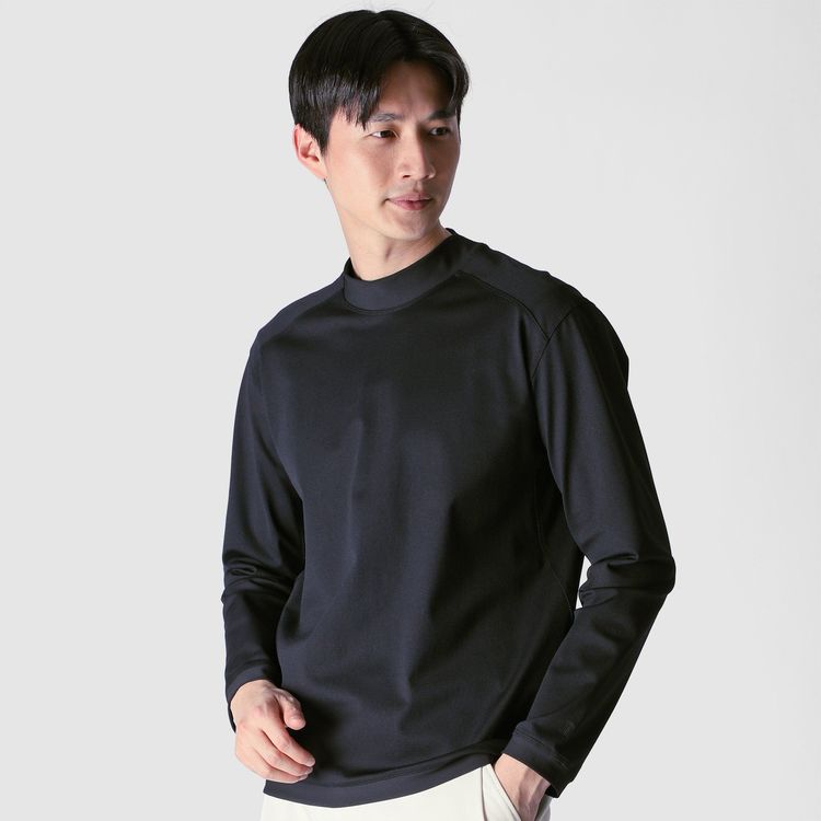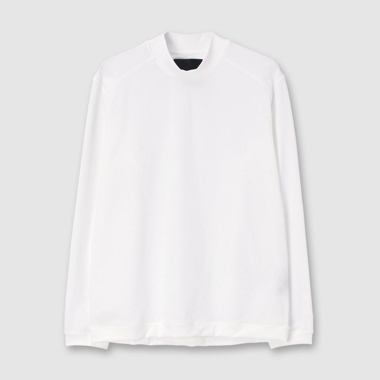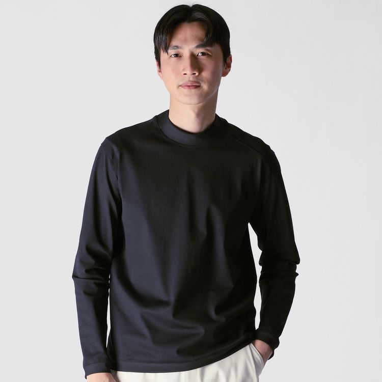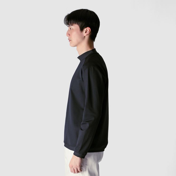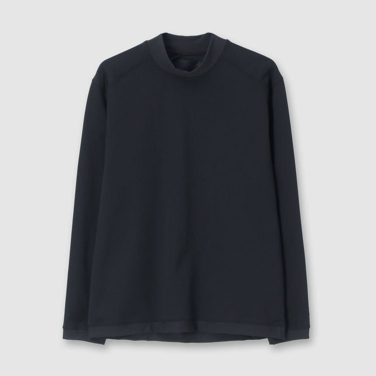抜群のストレッチ性や接触冷感性を持つ、合繊鹿の子地でモックネックプルオーバーを作りました。