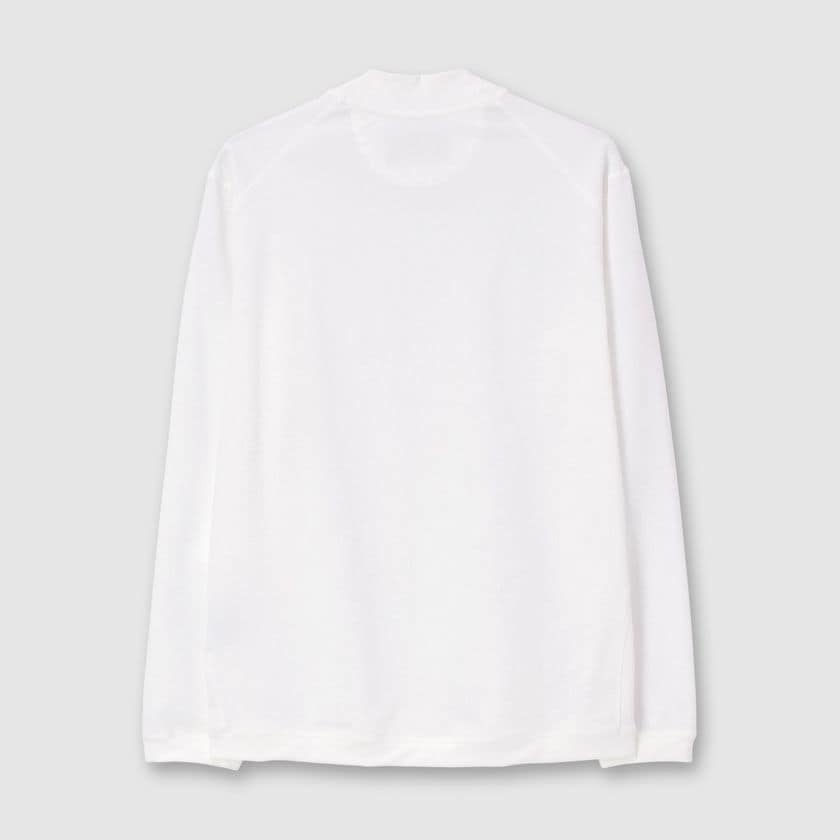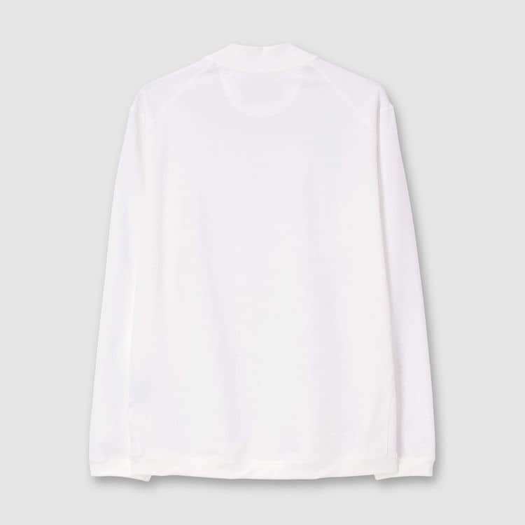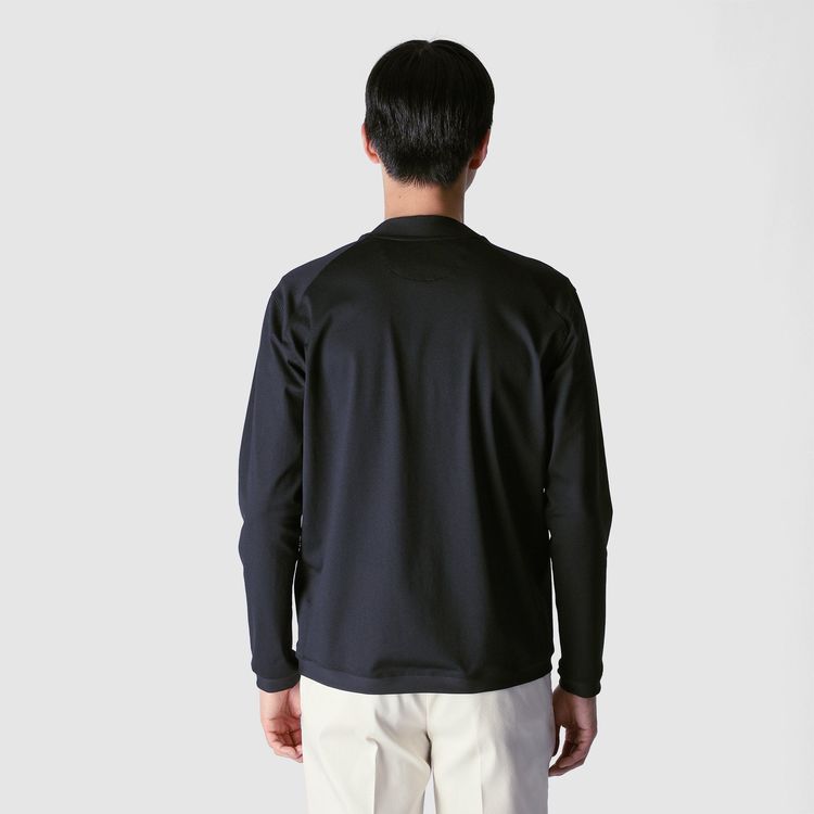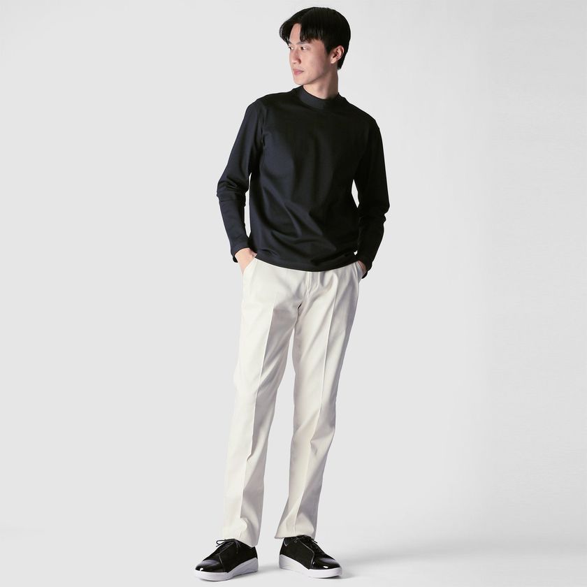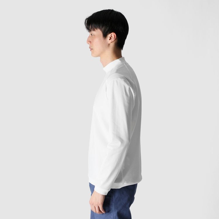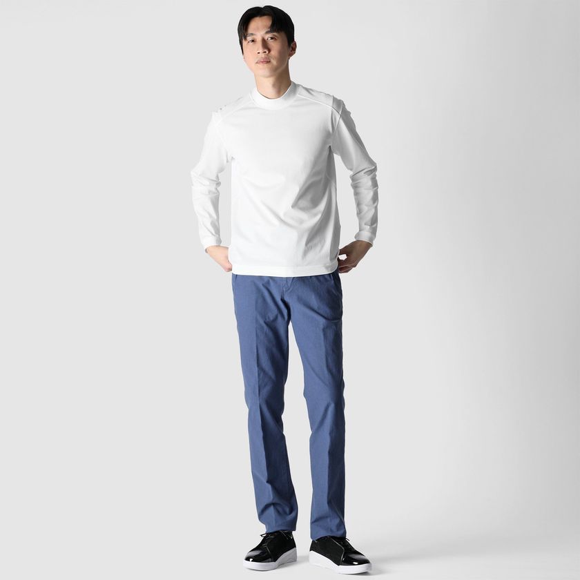 抜群のストレッチ性や接触冷感性を持つ、合繊鹿の子地でモックネックプルオーバーを作りました。