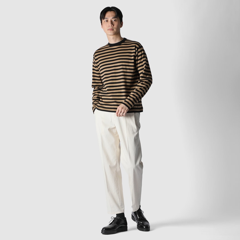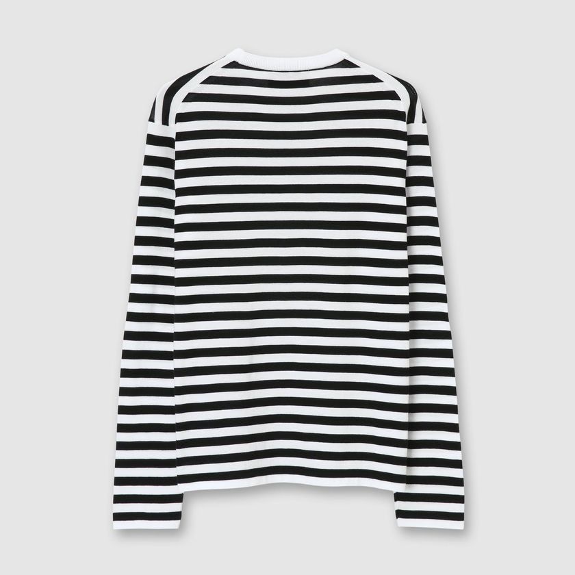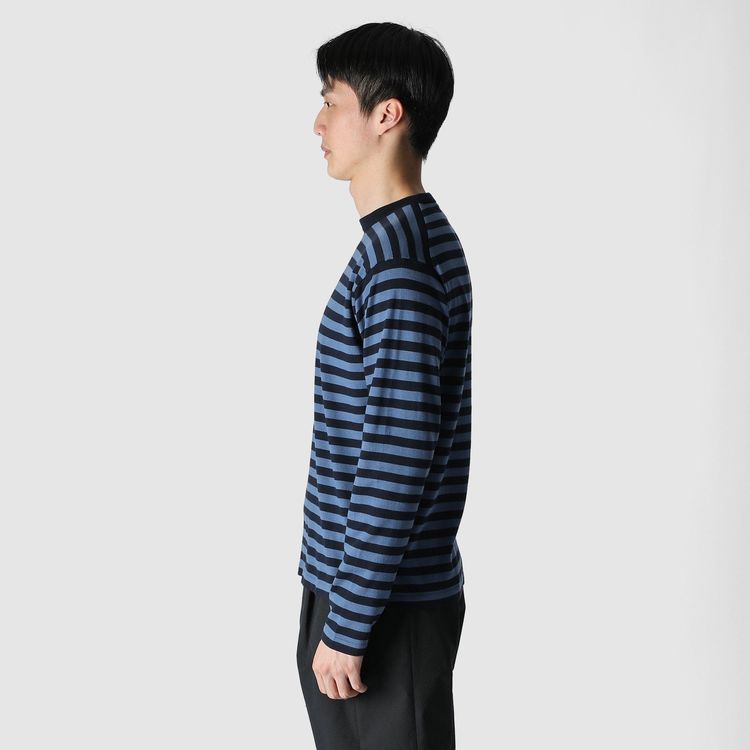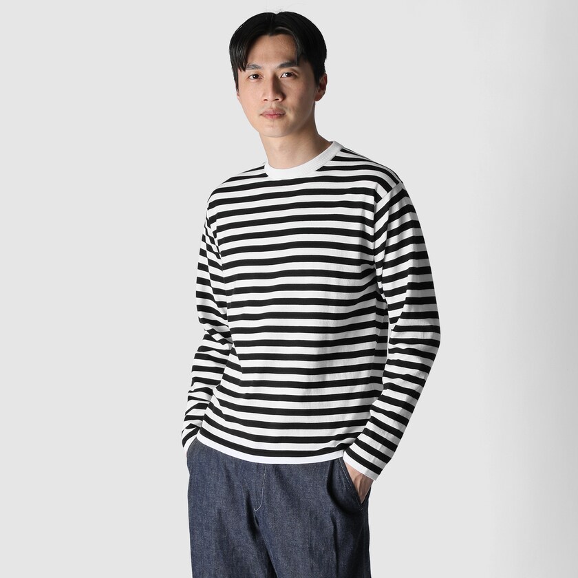緻密で繊細な編み立てによって、エレガントで遊び心のあるボーダーTに仕上がりました。