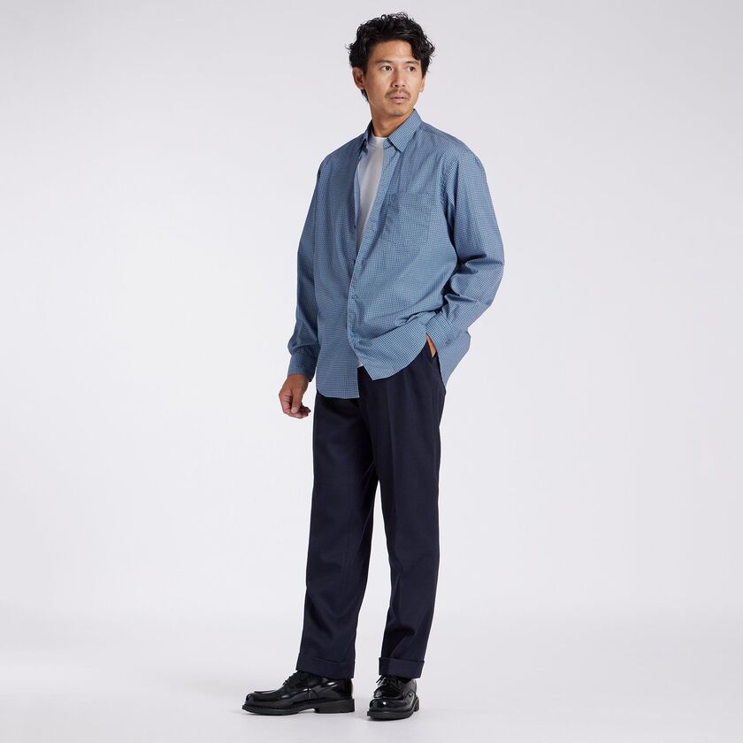 コーディネートに取り込みやすいシャツです。