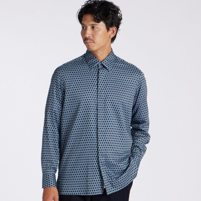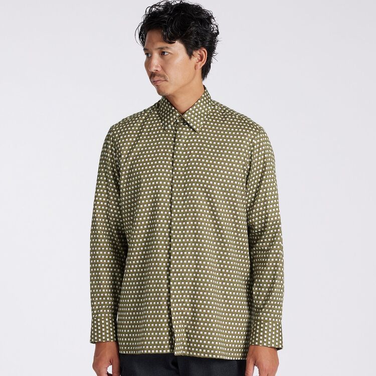 "宮殿総柄"と呼ばれる窓枠が全面に連続してデザインされたアールデコ調のプリントデザイン。